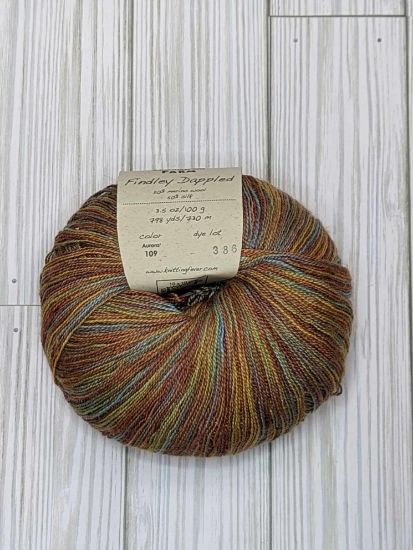 Findley is our lace yarn, 50% Merino 50% Silk, 100% luscious. At nearly 800 yards, you’ll be super happy that it’s in a ball, rather than a hank you have to wind! The yarn is super smooth with a beautiful sheen. It’s soft, doesn’t split and it feels A.MAZ.ING when it’s knitted up.This beautiful, multi-colored yarn is dyed in a special way to prevent pooling of colors. Perfect for summer shawls and other laceweight garments. The silk content makes the colors glow.